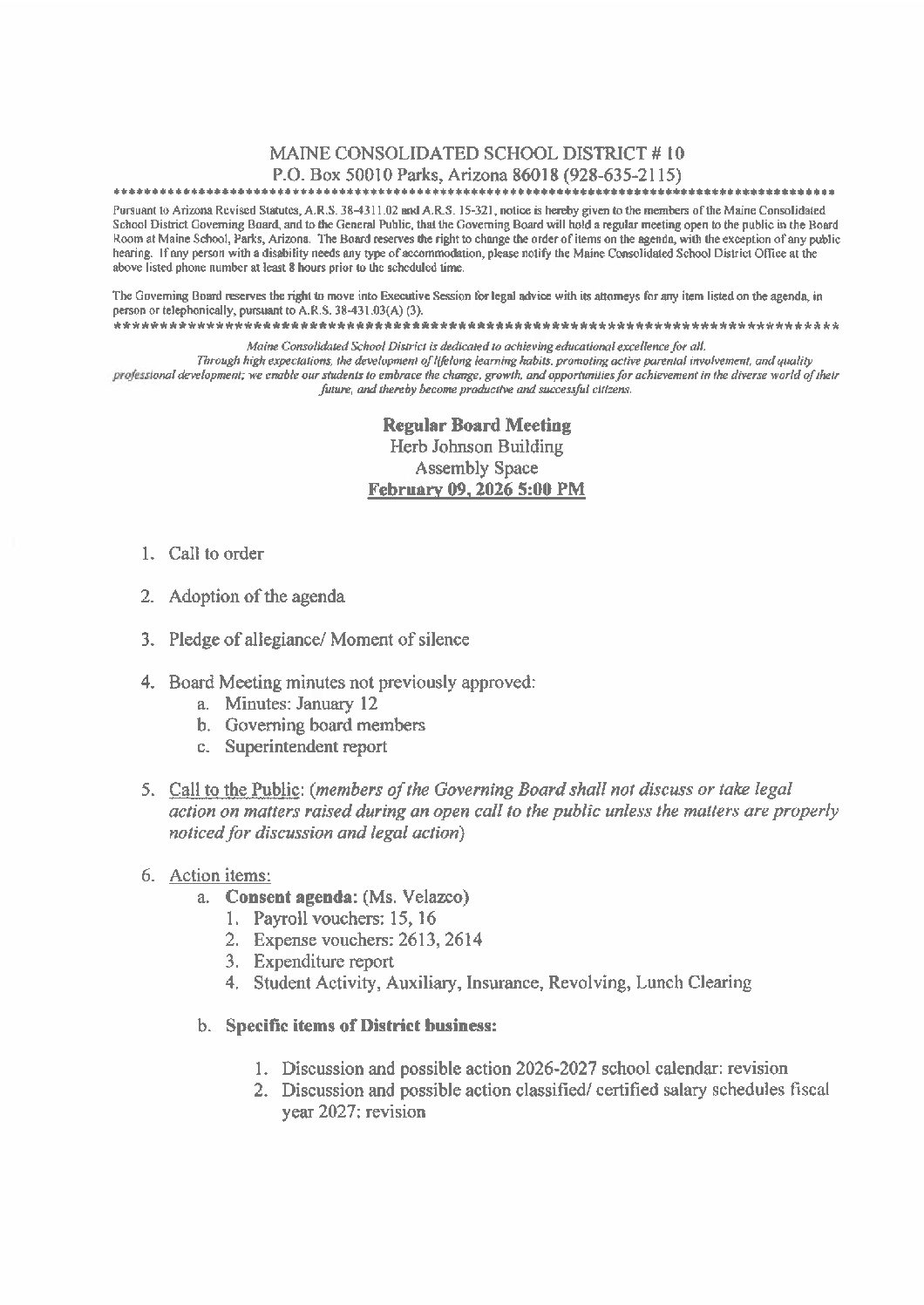 - Tuesday, January 20: Governing Board Candidate visit by Coconino County Superintendent Mango-Paget: 3:30-5:30pm